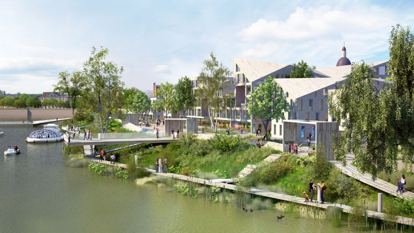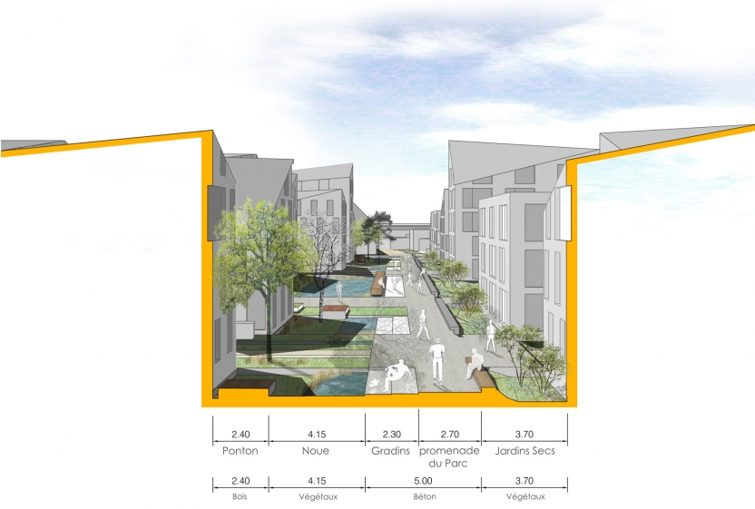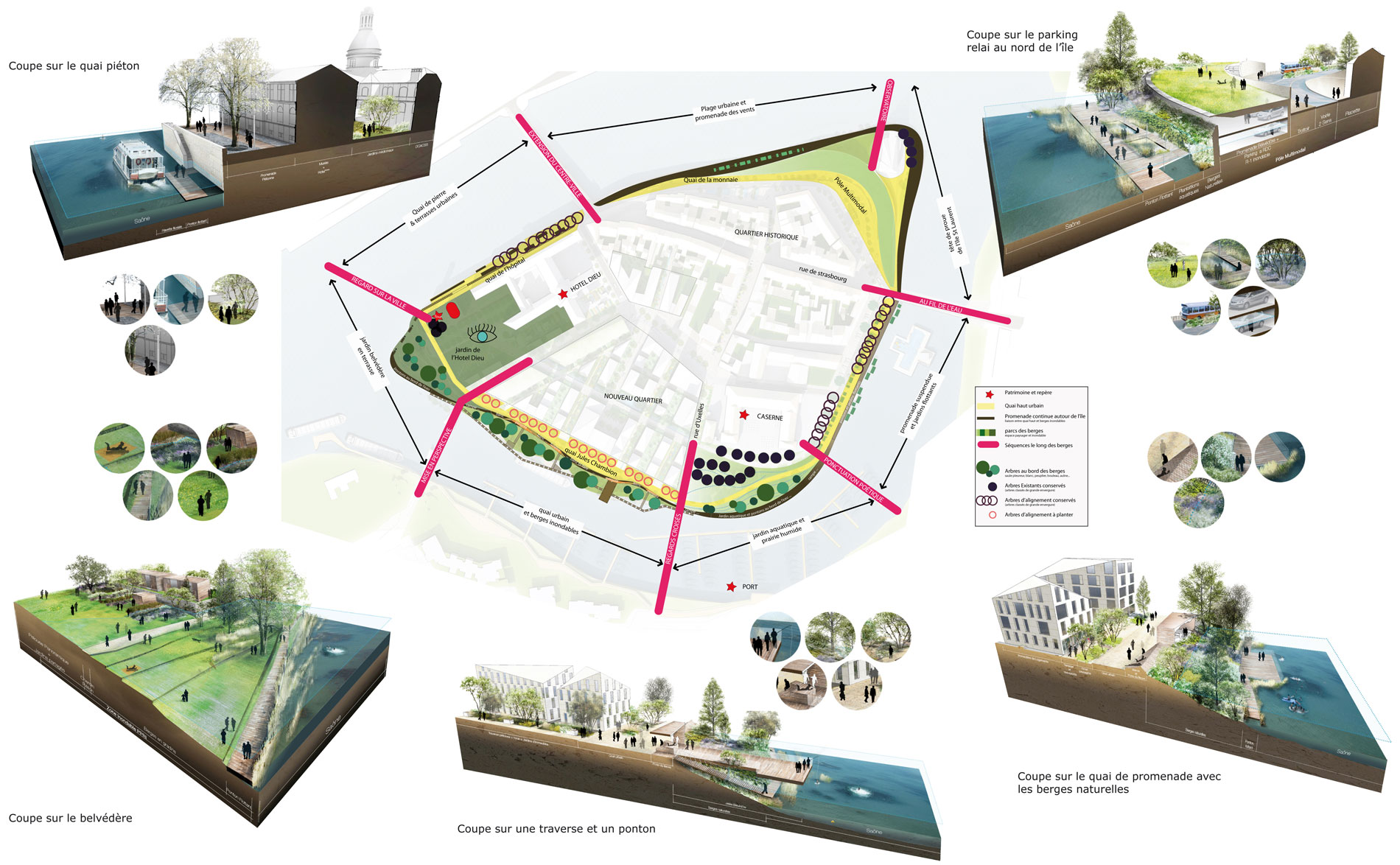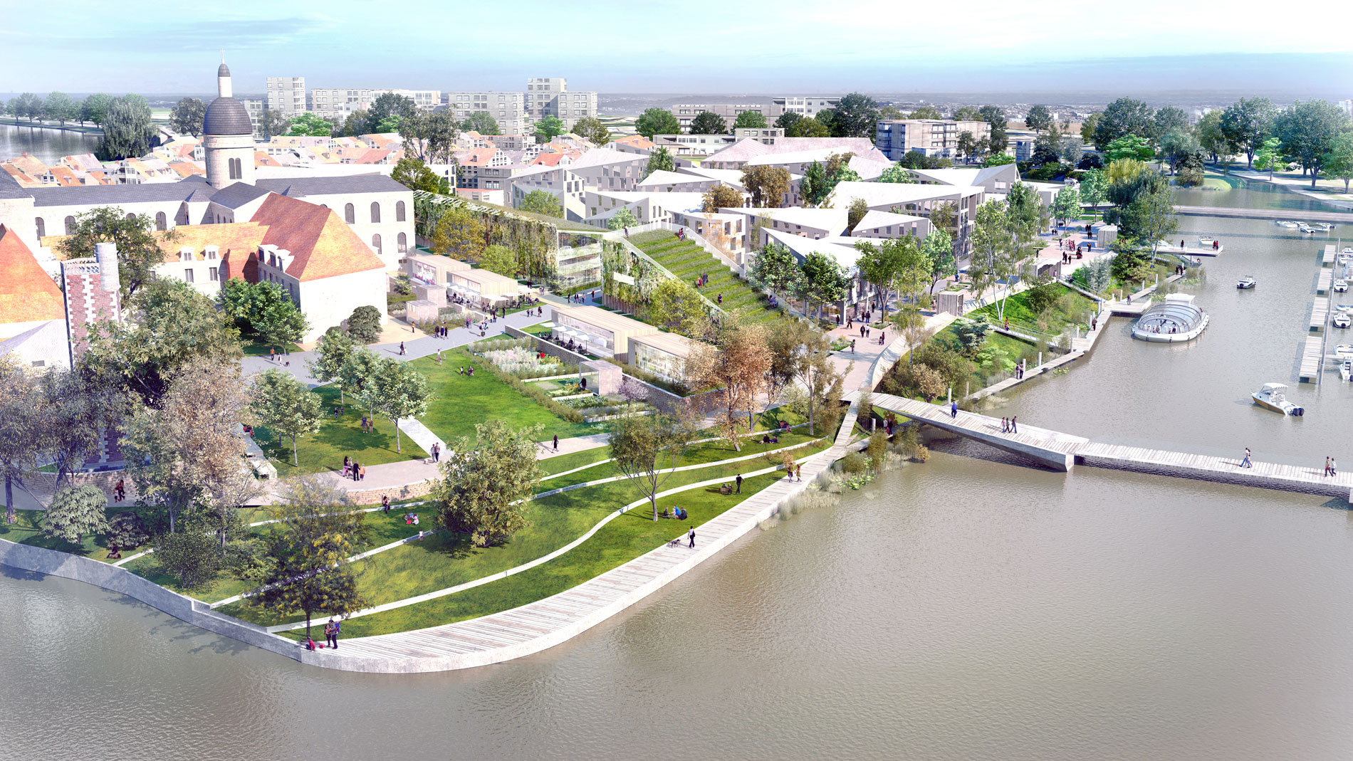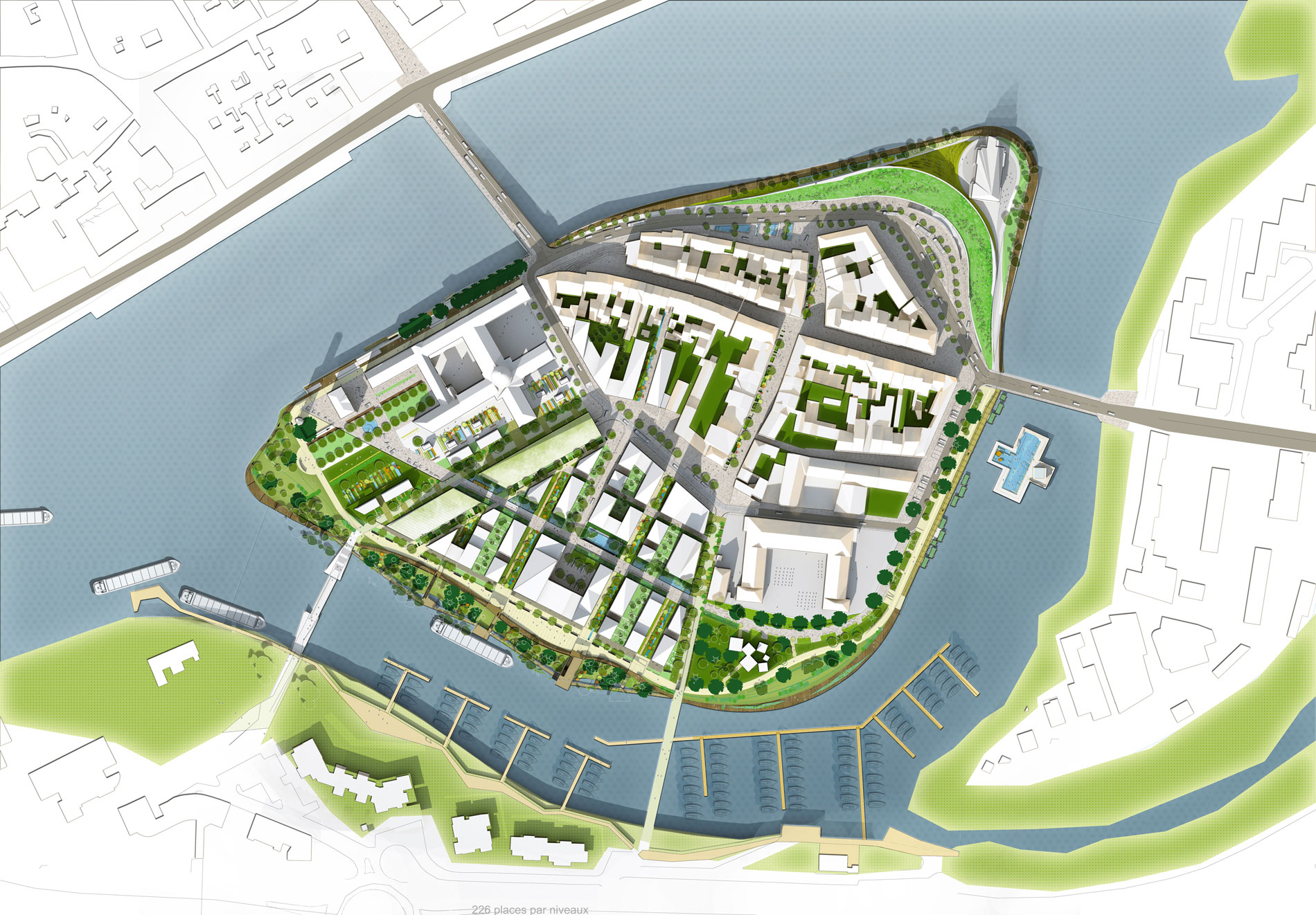 Le premier objectif était d’étendre de centre-ville actuel à l’ensemble de l’île Saint-Laurent grâce à l’aménagement d’un territoire qui ne constituera plus un espace de transit, mais bien un lieu de vie renforcé, plus mixte en fonctions et usages, et complémentaire du centre-ville actuel.