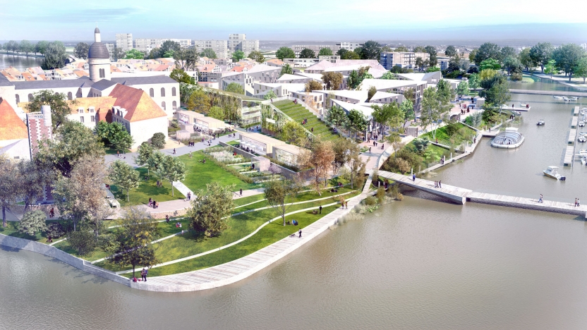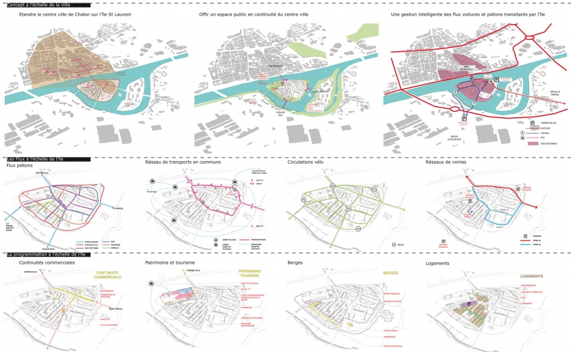 L’île Saint-Laurent constitue la dernière et plus vaste emprise à aménager dans le centre historique de la ville. Située à l’interface entre la ville historique de la rive droite, et les quartiers d’extension de la rive gauche, elle symbolise les liens étroits qu’entretiennent la ville et la Saöne, élément majeur du paysage chalonnais, et de la qualité du cadre de vie de ses habitants.