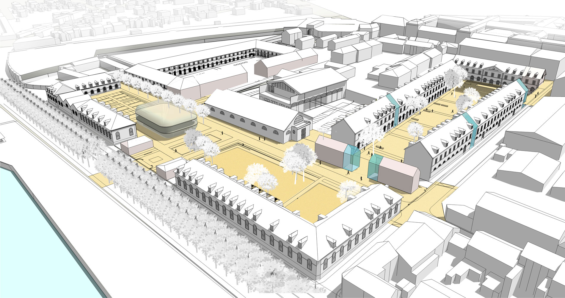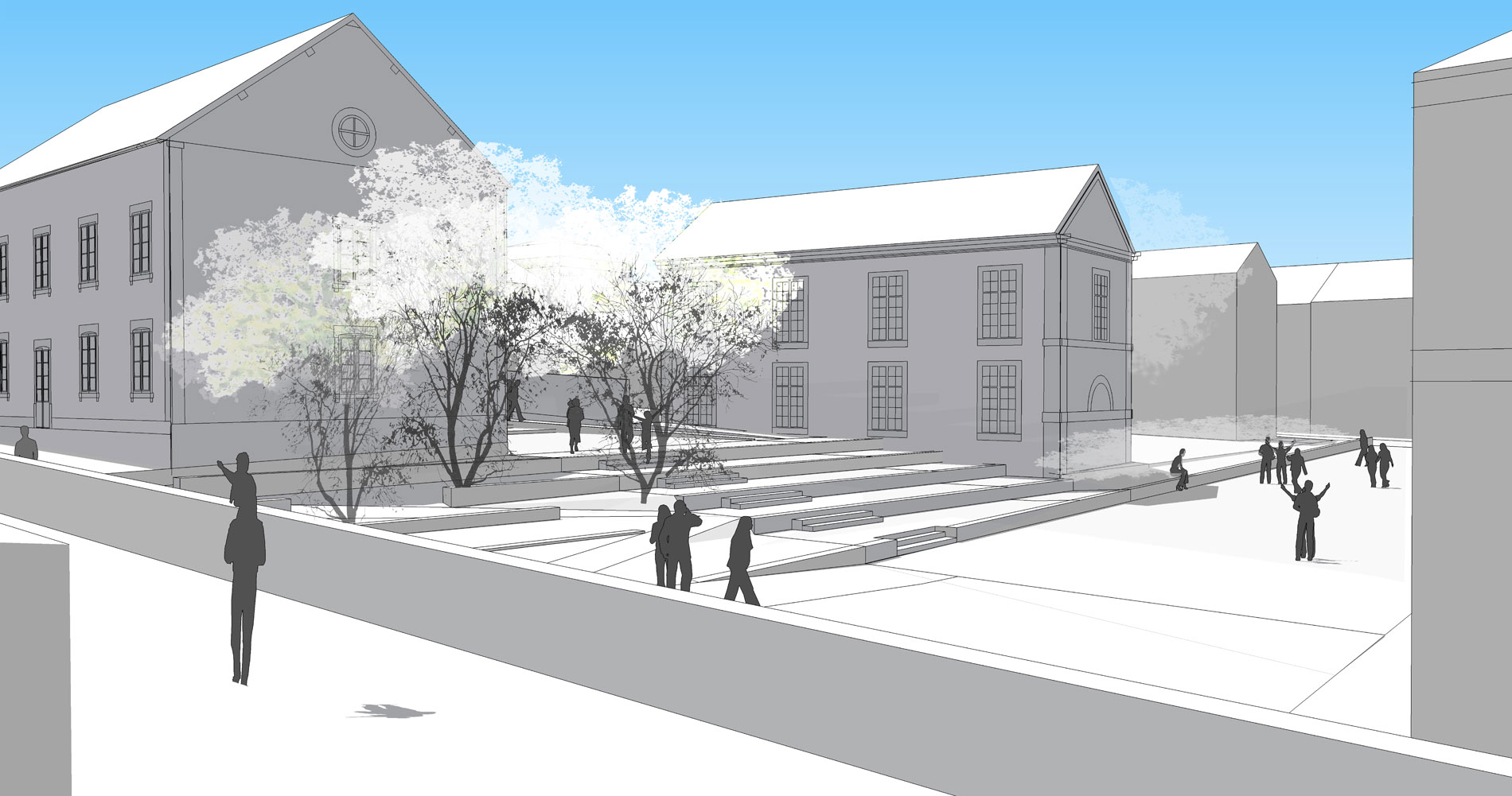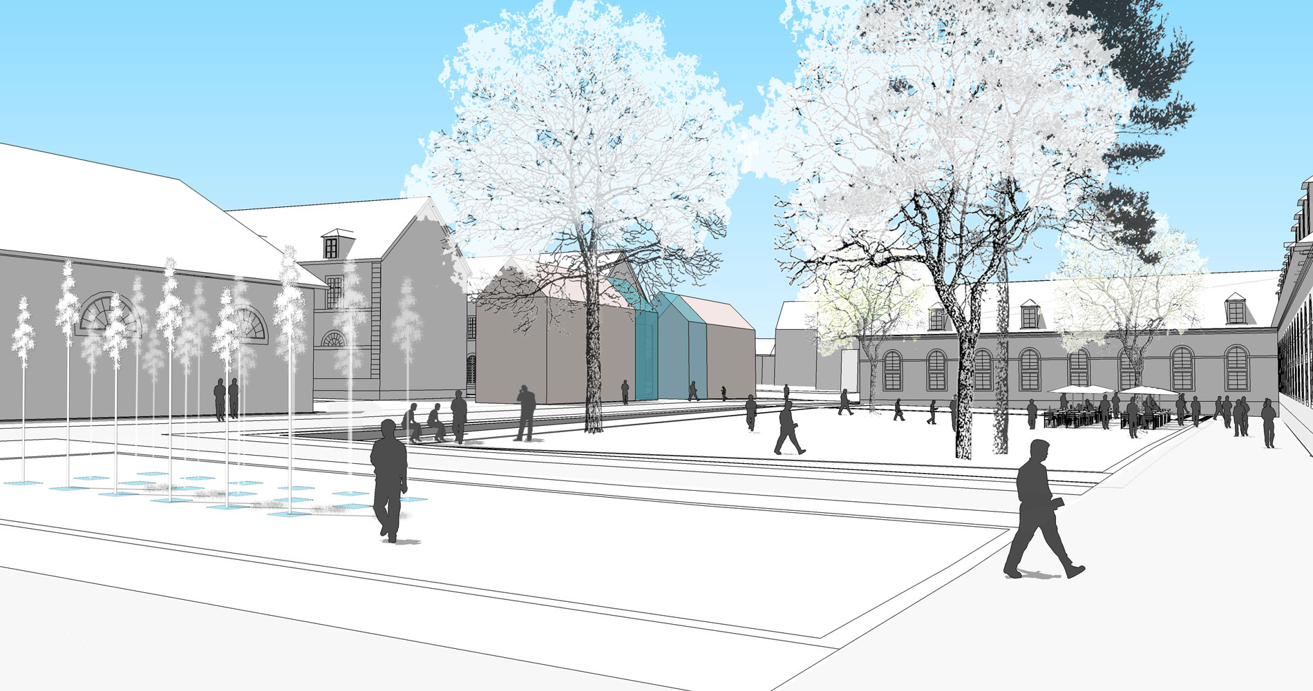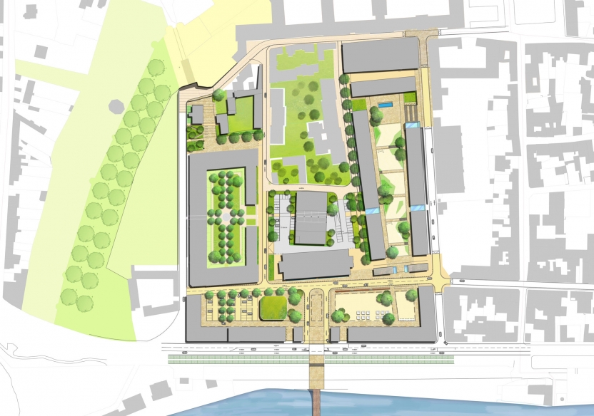 A travers les aménagements proposés, le projet permet de ré-ouvrir ce site historiquement enclavé. La singularité des pleins et des vides est conservée mais l’ensemble du secteur est réunifié et mis en relation avec son environnement, par le biais d’un travail qualitatif sur les sols. Une place publique centrale est crée de manière à constituer une polarité, un lieu de destination animé en bordure de l’Oise.