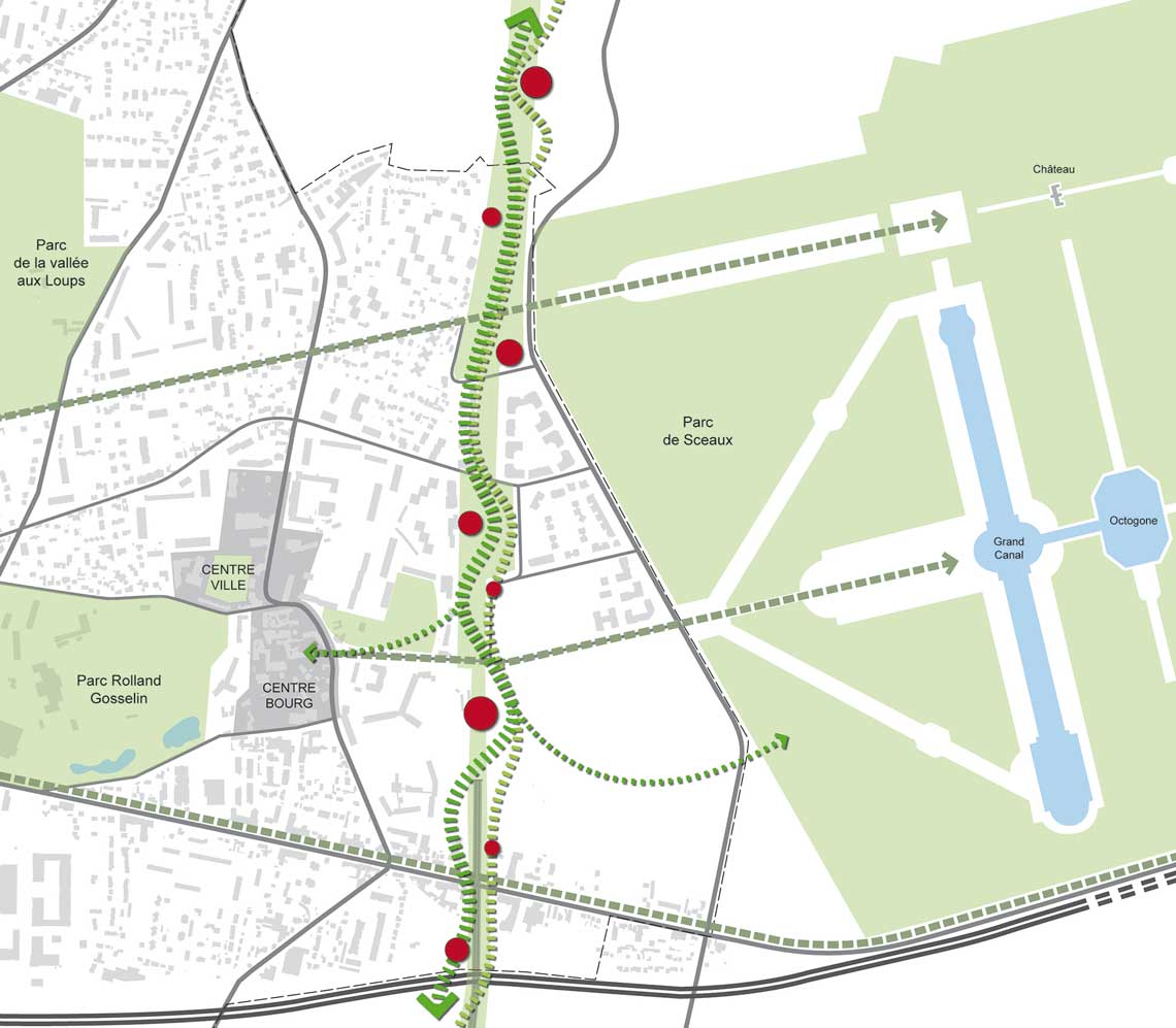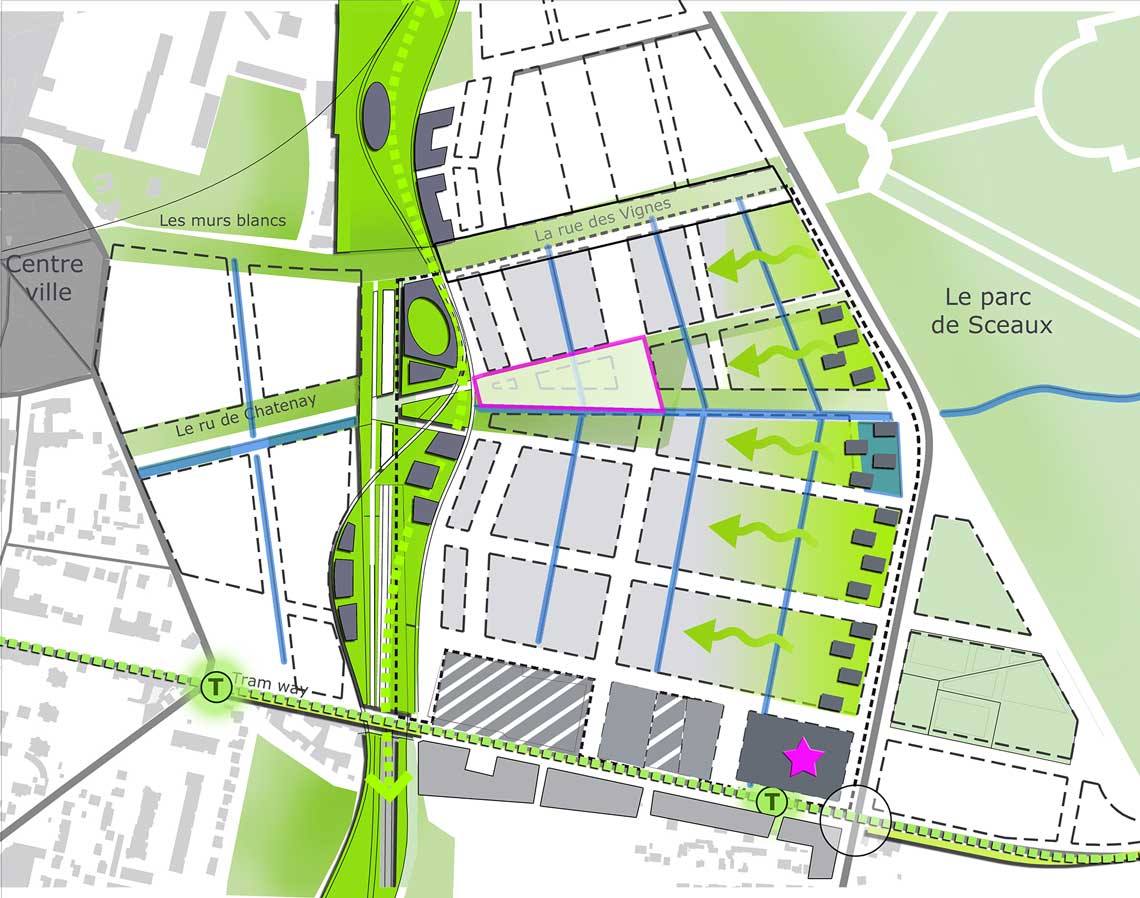 L'agence a été sélectionnée en 2014 pour participer à la réflexion sur le devenir des terrains désaffectés de l’Ecole Centrale Paris à Châtenay-Malabry. Le site de 20ha, idéalement situé entre centre ville historique et dans le prolongement des grands axes du Parc de Sceaux, est néanmoins très introverti.