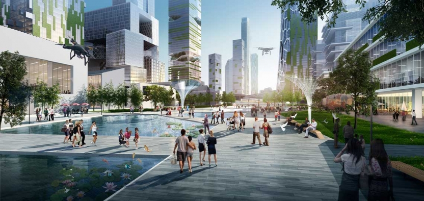 L’enjeu du projet est de fournir un cadre flexible de développement et une conception urbaine intelligente qui face au nouvel avenir pour la construction d’un environnement de haute qualité dans la zone de Shenzhen Bay Super Headquarters Base. Inspirés par les villes-parcs et les établissements de Lingnan ( le sud du Guangdong et du Guangxi), nous proposons donc un concept de « la peinture de montagne et de mer, le sommet du bleu profond », représentant les quatres scènes suivants : 1) Chaîne verte écologique ; 2) Expérience multidimensionnelle ; 3) Transport zéro carbone ; 4) Nouveau aspect de Lingnan. A l’avenir, la zone ne sera pas seulement une base de siège social nouvelle et complète, mais aussi un centre-ville côtier écologique le plus désiré par les citoyens.